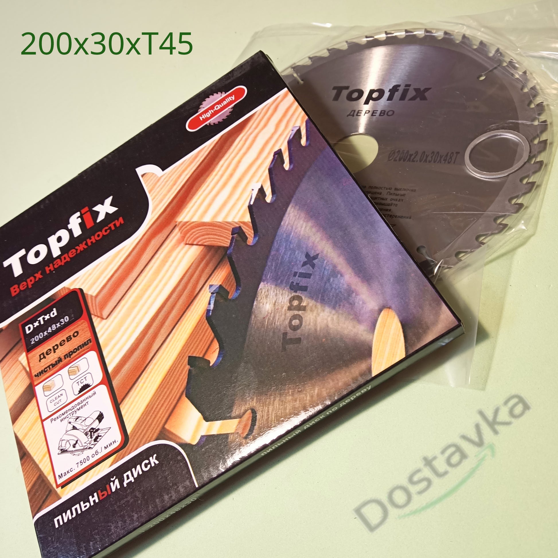 Пильный отрезной диск Topfix по дереву 200х30хt45 (дерево/ ламинат) посадочное место 30 мм. 48 зубов