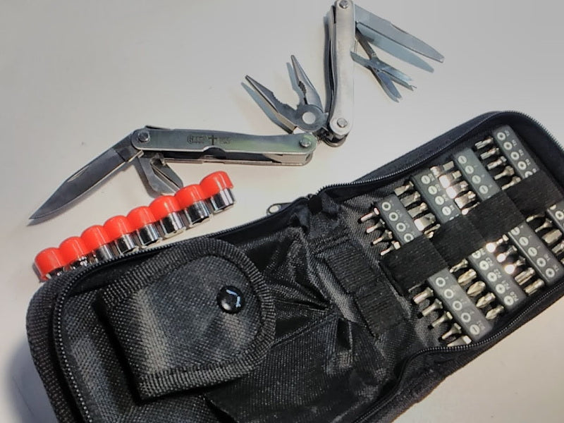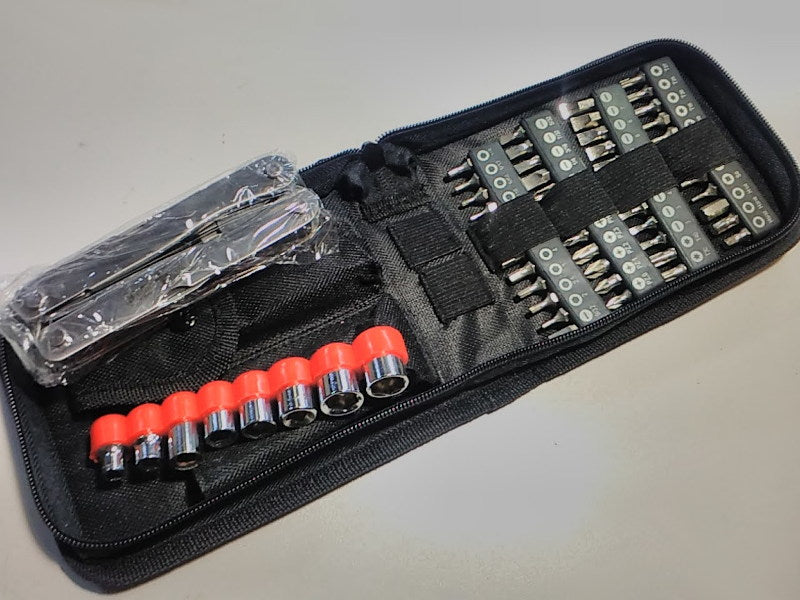 Универсальный набор отверток 48 видов, накидных ключей 7 видов 5-12 мм, трансформер кусачки, плоскогубцы, пилка, ножницы, открывалка, нож, напильник, в мягком кейсе grandway KT1889AD