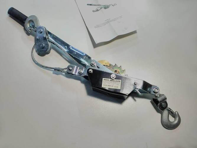 Ручная лебедка MIOL 80-473 предназначена для перемещения грузов при погрузочно-разгрузочных работах. Грузоподъемность: до 2000 кг; Высота подъема: 1,5 м; Стальной трос диаметром 5 мм; Сила рычага: 15:1; Металлический корпус с храповым механизмом и приёмным барабаном; Рычаг с пластиковой рифлёной рукояткой; Два крюка с карабинами (по одному на корпусе и на тросе).