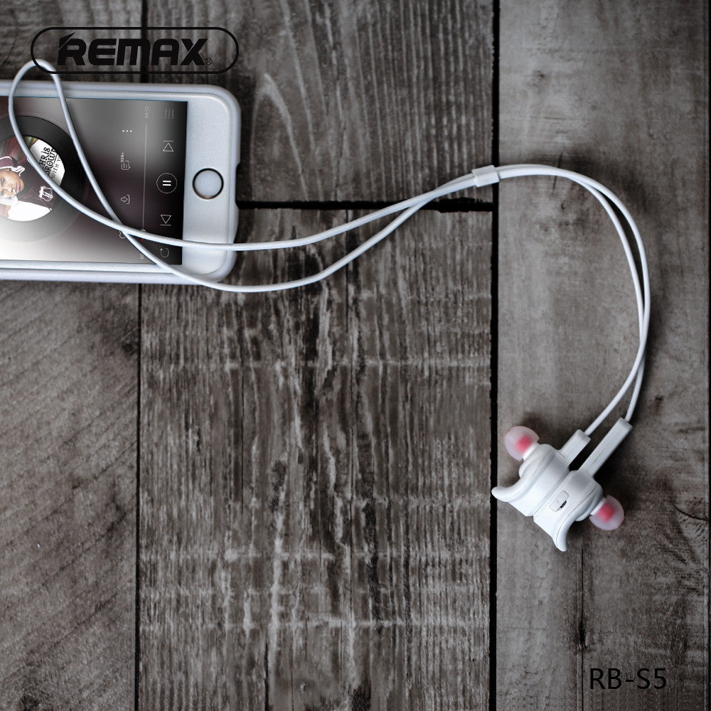 Стерео блютуз гарнитура REMAX RB-S5 -неотъемлемый атрибут любителей активного образа жизни, меломанов, которых всегда сопровождает музыка. Комплектуется оригинальной упаковкой в стильном дизайне. Время работы гарнитуры в режиме разговора 5 часов, при этом процесс зарядки занимает до двух часов. Устройство оснащено микрофоном, ушные элементы гарнитуры удобны в ежедневной эксплуатации. В комплекте вакуумные вкладыши нескольких размеров. На одном из наушников расположены кнопки принятия вызова и регулировка громкости. Практичным дополнением является примагничивание ушных элементов друг ко другу. Наушники со встроенным аккумулятором заряжаются через micro-usb кабель, идущий в комплекте.