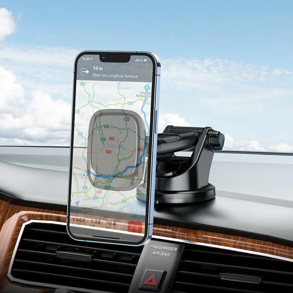 Автомобильный магнитный держатель Hoco CA116, качественный и надежный автомобильный держатель с мощным магнитом, который позволяет без каких либо рисков крепить смартфон в удобном положении, подходит для всех моделей телефонов. Металлическая плоская пластина клеется на двусторонний скотч к задней стенке смартфона или на чехол и примагничивается к держателю. Сам держатель крепится к любой ровной поверхности с помощью двухстороннего скотча. Крепление регулируется по наклону в любую сторону, а также поворачивается на 360 градусов. Держатель удобен тем, что практически не занимает места, стильный и компактный - идеально вписывается в любой интерьер.Уникальный держатель, который обладает преимуществом миниатюрных размеров и магнитным креплением.