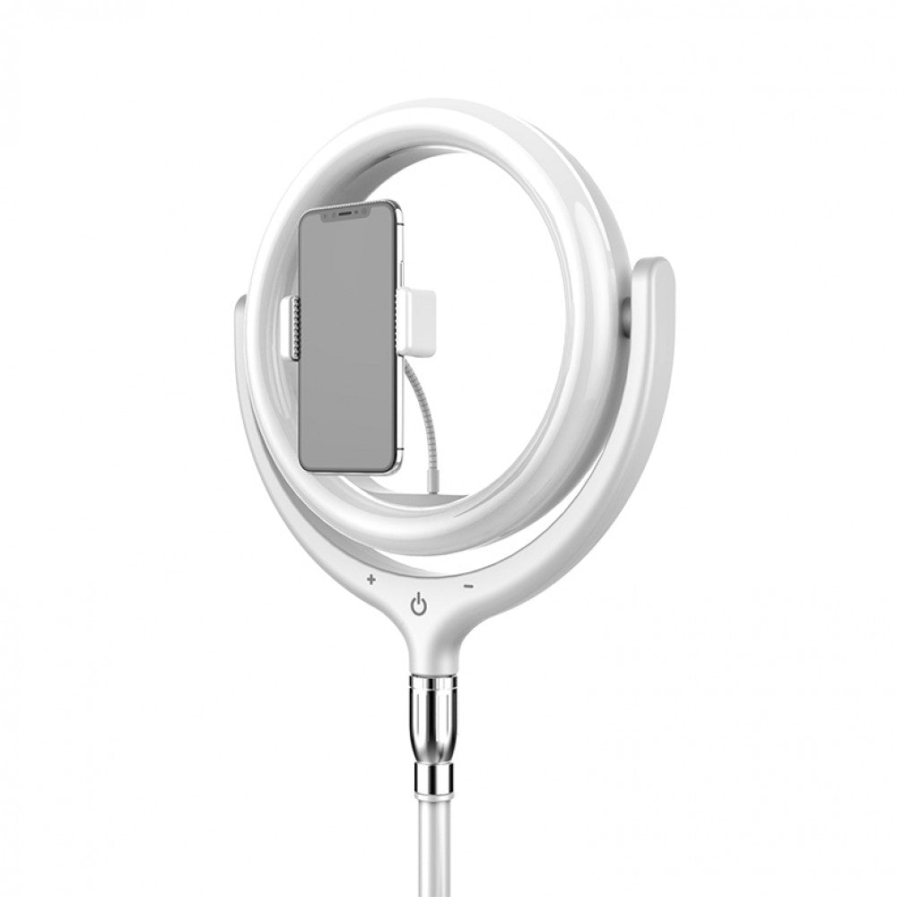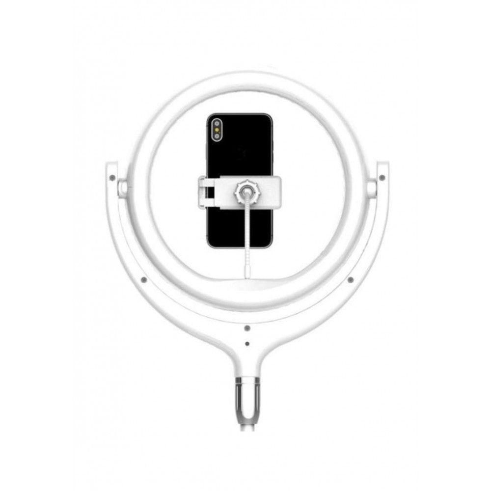 Кольцевая лампа с держателем для смартфона и дистанционным пультом управления предназначена настройки правильного света при проведении фотосессий (для фото лица - макияж, прическа и т.д.).Светодиоды, в зависимости от выбранного режима (3 режима подсветки), осветят ваше лицо мягко и аккуратно, либо подарят студийную подсветку, или же, дадут освещение, подобное ярким софитам. Кольцевая лампа с держателем для телефона отлично подойдет для селфи.3 режима подсветки - теплый, холодный, смешанный (регулируются сенсорным управлением и пультом дистанционного управления). На задней части кольца расположены 4 сенсорные кнопки, которые отвечают за управление: кнопка включения, выбора режима света, и две кнопки регулировки яркости. Так же, данным кольцом можно управлять с помощью пульта дистанционного управления, который идет в комплекте (батарейки в комплект не входят). Благодаря пульту можно на расстоянии выбирать режим света, уровень яркости, что делает настройку света очень удобной.