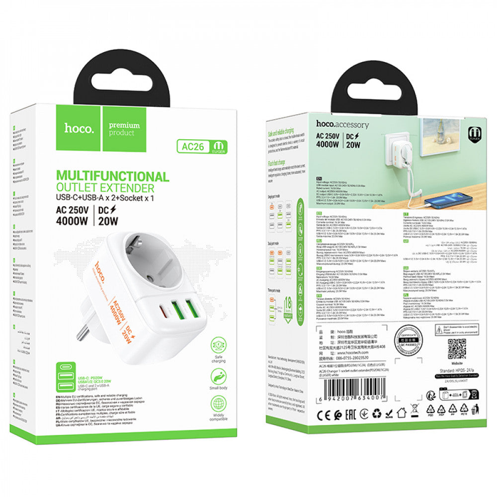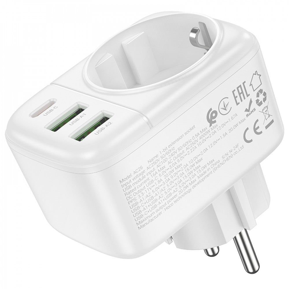 Выход USB: USB-C: 20 Вт (PD/QC/AFC/FCP); USB-A1/A2: 20 Вт (QC/AFC/FCP); общий выход USB-C+USB-A1/A2=5В/3А; USB-A1+USB-A2=5В/3А; USB-C+USB-A1+USB-A2=5В/3А