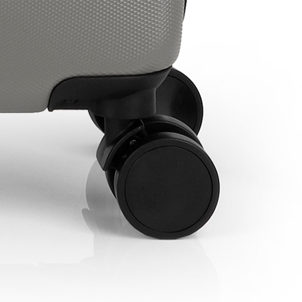 Валіза оснащена чотирма повноповоротними колесами із можливістю незалежного розвороту шкірного колеса на 360°. Системою передбачено рівномірний перерозподіл навантаження на кожне колесо, що в свою чергу сприяє плавному руху та маневреності валізі, докладаючи при цьому мінімум зусиль. Колеса виготовлені із високотемпературного термопластичного поліуретану (TPU). Матеріал має міцність порівнянну з пластиком, гнучкістю силікону, а також має підвищену стійкість до перепадів температур. Відмінною особливістю коліс із TPU матеріалу є зниження шуму до мінімуму під час руху валізи по нерівній поверхні. Завдяки стійкості до стирання матеріал коліс відрізняється тривалим терміном експлуатації.