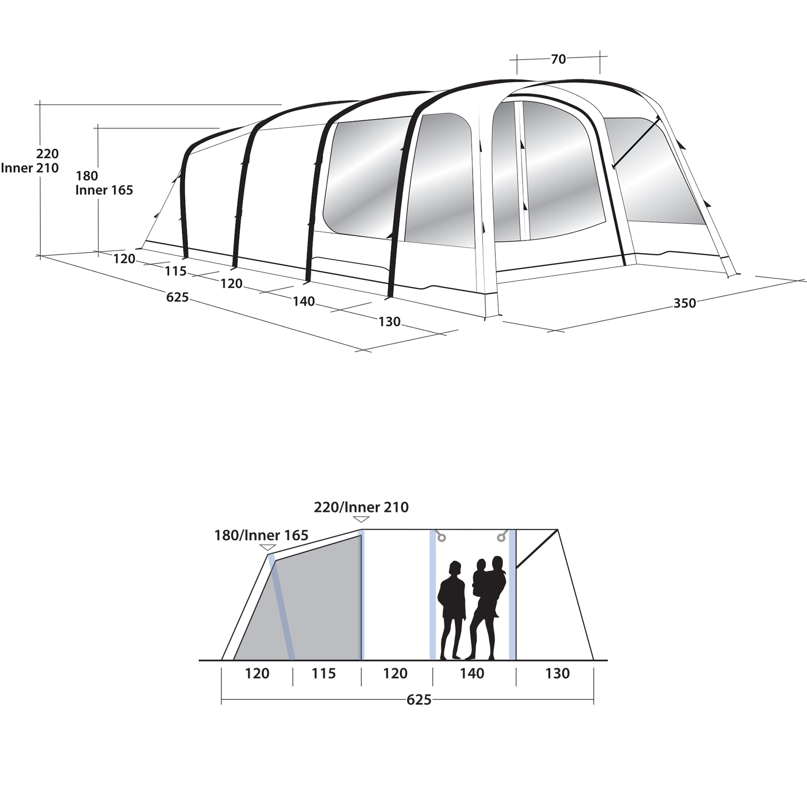 Каркас: Надувні опорні балки 9 psi/0.6 bar + дуга зі скловолокна Ø11 мм