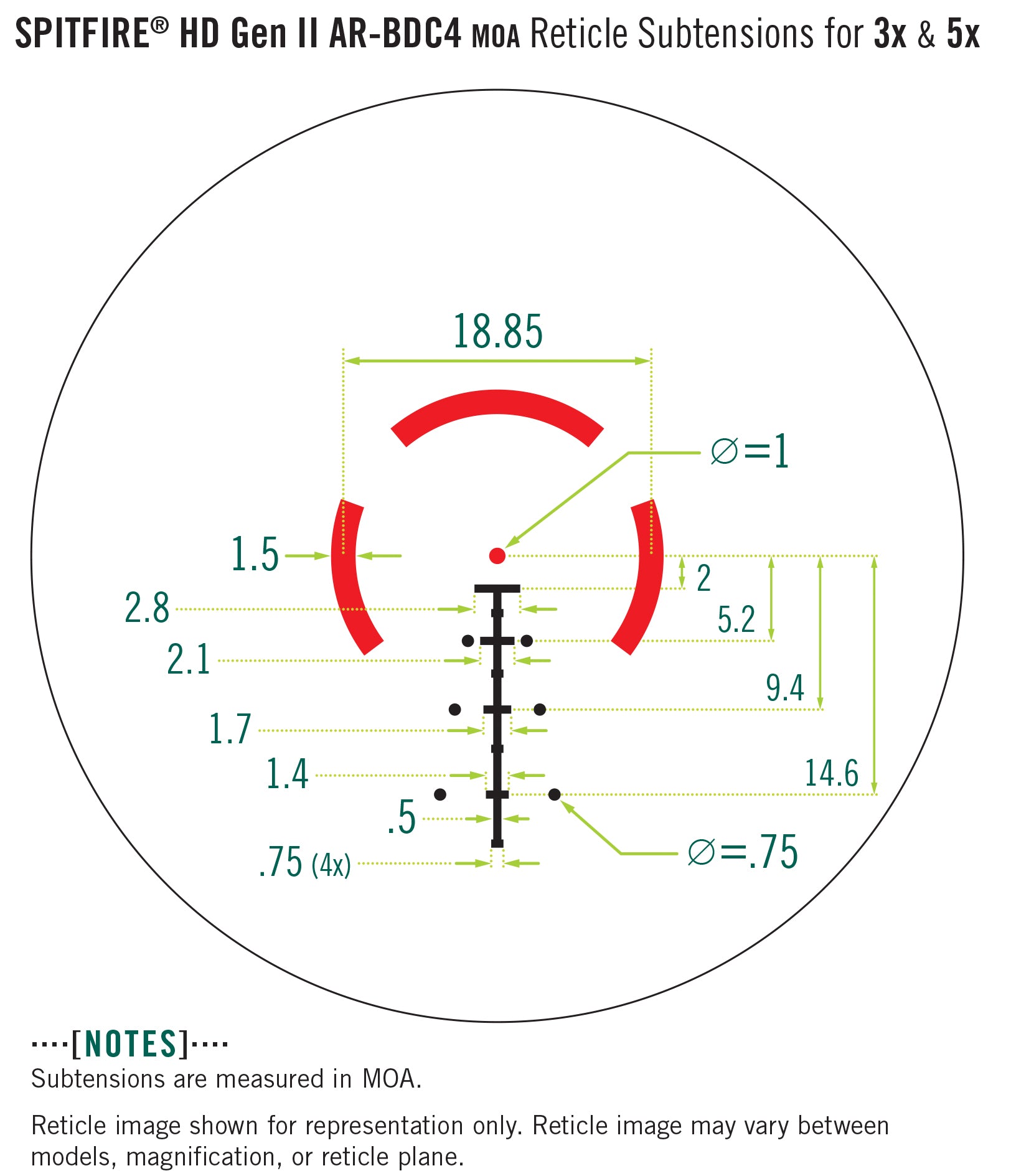 Даний тип сітки створень для максимально ефективного використання патрона 5.56 у вашій AR гвинтівці, що забезпечує як швидке виявлення цілі, так і градуйовану шкалу ялинку для внесення поправок по горизонту на дистанції до 650 ярдів.
