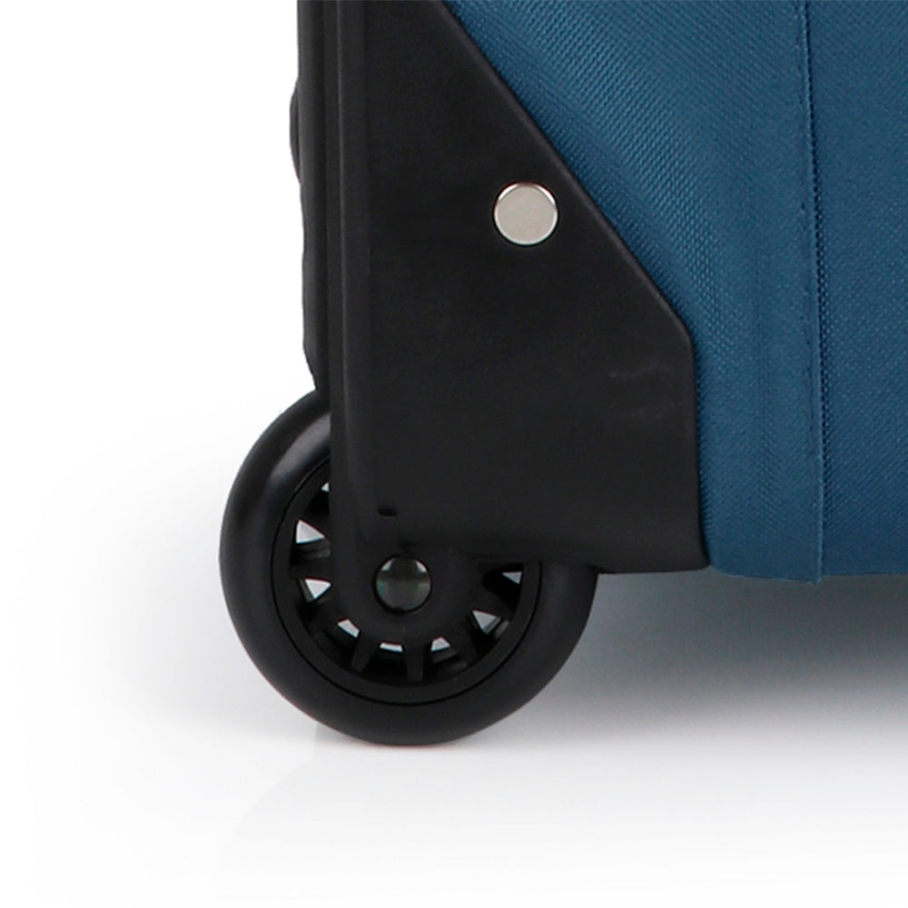 Валіза оснащена парою надійних коліс із високотемпературного термопластичного поліуретану (TPU). Матеріал має міцність порівнянну з пластиком, гнучкістю силікону, а також має підвищену стійкість до перепадів температур. Відмінною особливістю коліс із TPU матеріалу є зниження шуму до мінімуму під час руху валізи по нерівній поверхні. Завдяки стійкості до стирання, матеріал коліс відрізняється тривалим терміном експлуатації.