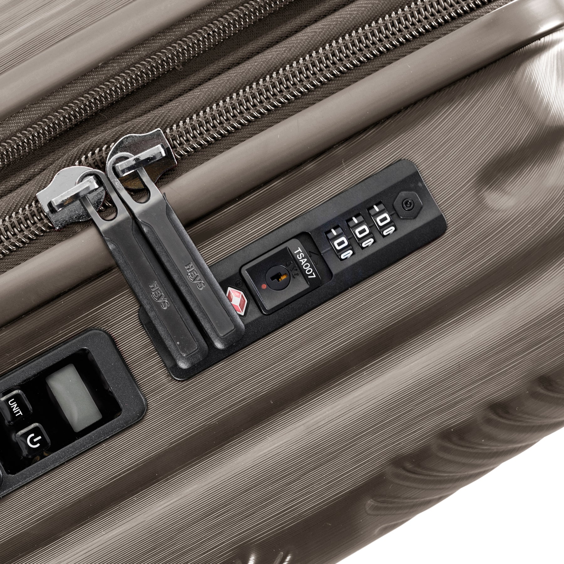 Серія валіз Charge-A-Weigh ll від Heys втілила у своєму дизайні лаконічність, стиль та сміливість геометричного візерунка. Матове металеве оздоблення надає елегантного зовнішнього вигляду та допомагає запобігти появі царапин та потертостей на поверхні. Виготовлений із композитного полікарбонату: легкий, міцний та ударостійкий матеріал, що використовується при виробництві пуленепробивного стекла.