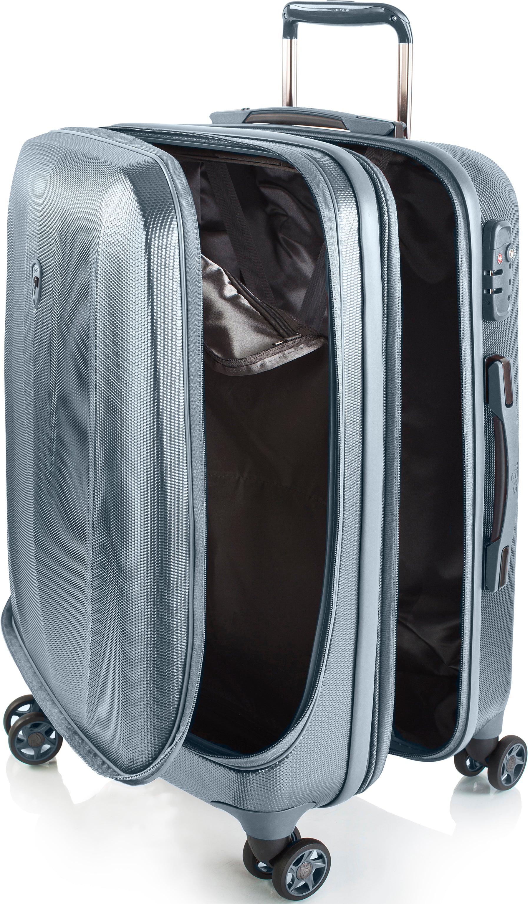 Серія валіз Vantage від Heys втілила у своєму дизайні візуально гладкі поверхні та скульптурні сучасні лінії Vantage. Відрізняється спортивним, але витонченим дизайном, який дивує зовнішнім виглядом та виділить вас у подорожі.