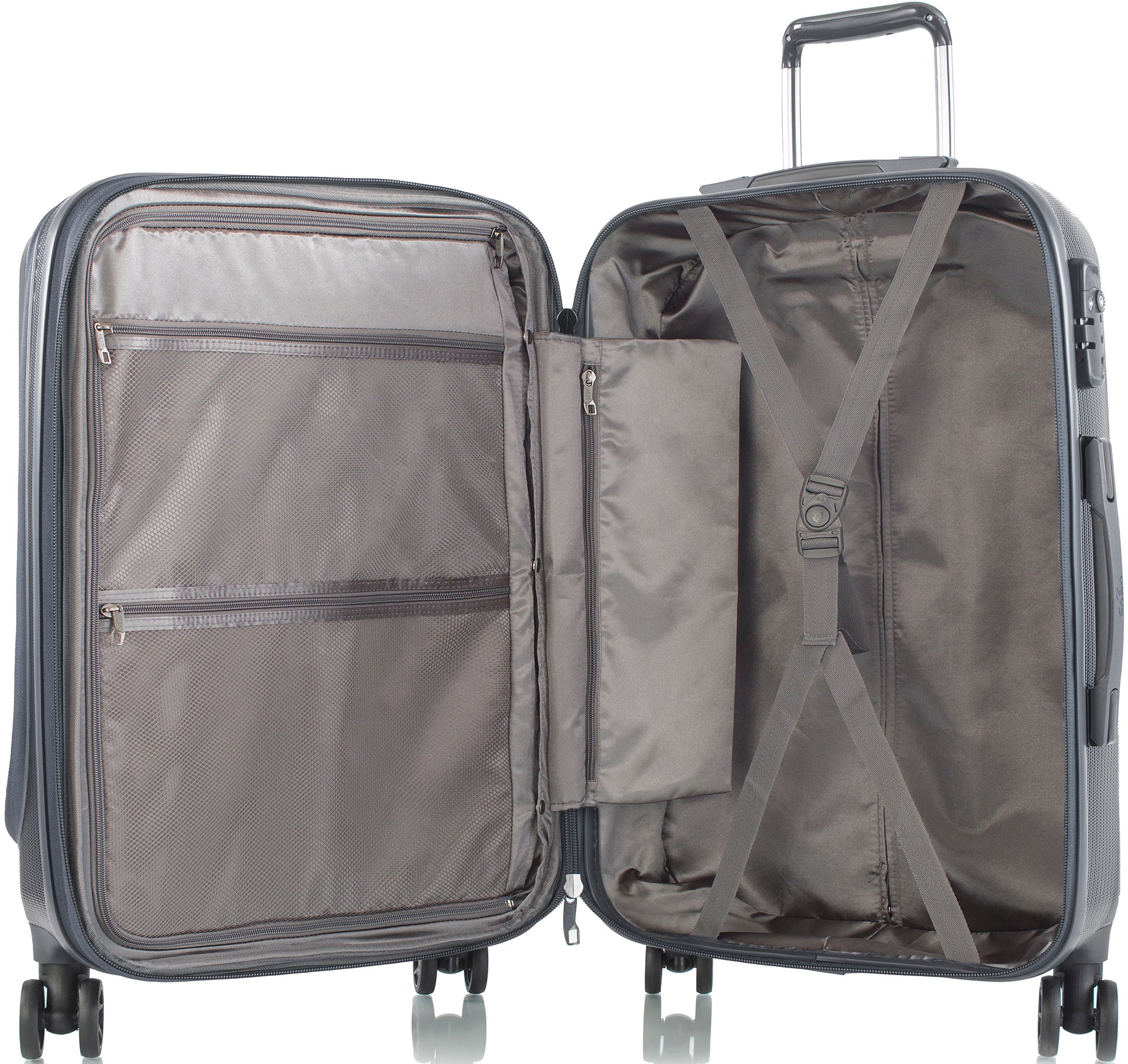 - Еластичні компрессійні ремні на фастексах для фіксації багажу всередині валізи.