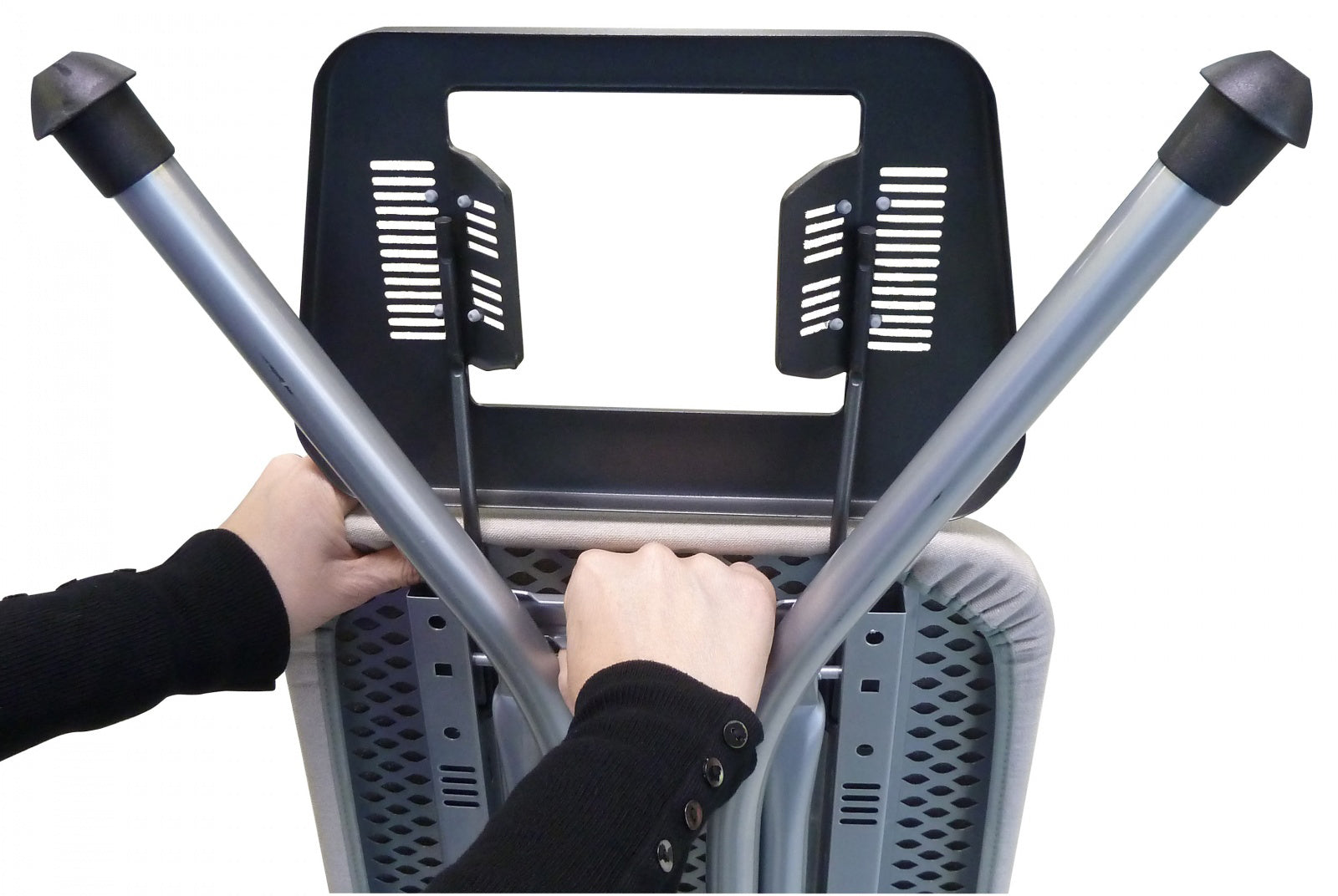 Rolser K-TRES Blanco/Negro (K03015-2064) має найбільшу робочу поверхню серед колекції Rolser, що дозволяє попрасувати речі без лишніх пересувань. Перфорована основа робочої поверхні запобігає утворенню конденсату. Більш ефективне прасування забезпечується трикульовим бавовняним чохлом, який відбиває тепло та пару. Підставка під утюг або парогенератор містить гнучкий тримач дроту. Модель регулюється по висоті в одинадцяти положеннях і має автоматичний фіксатор. Трубчасті ніжки надають конструкції стійкості та легко кріпляться до дошки у складеному стані, що унеможливлює її випадкове відкриття.