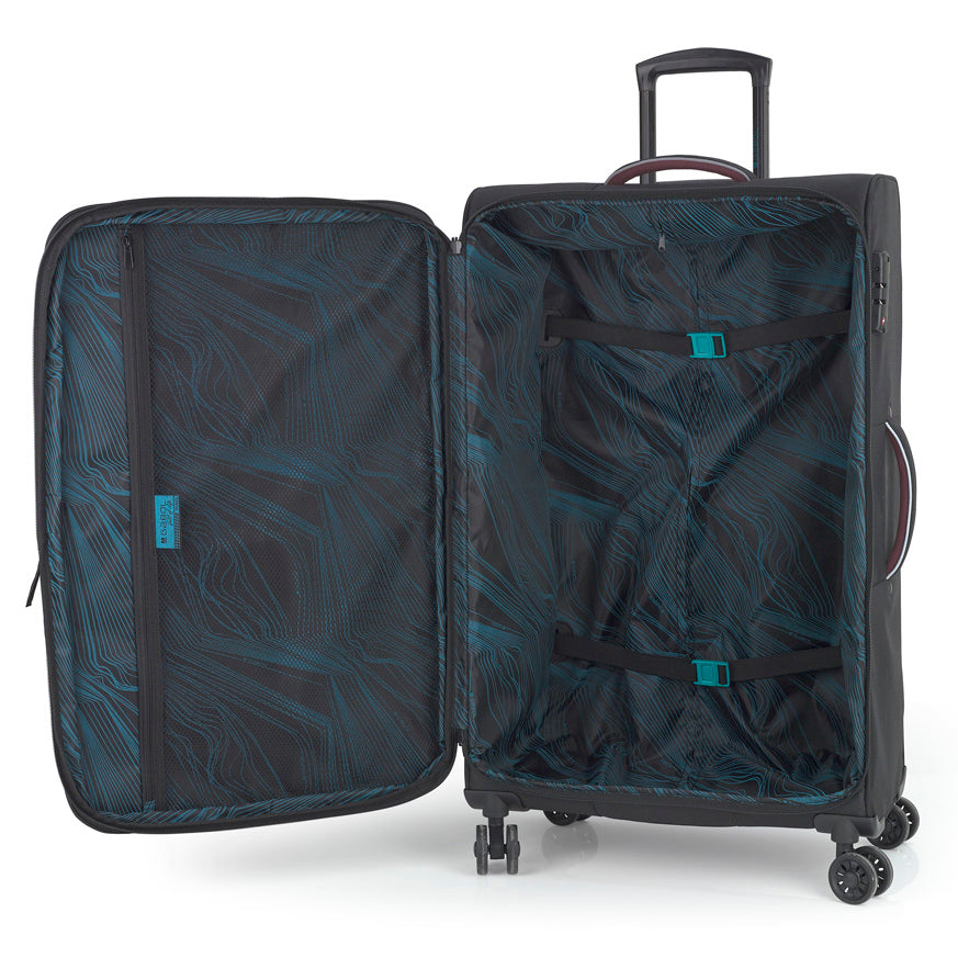 - Валіза розділена перегородкою на блискавці на два основні відділення, перегородка має сітчастий карман на блискавці.