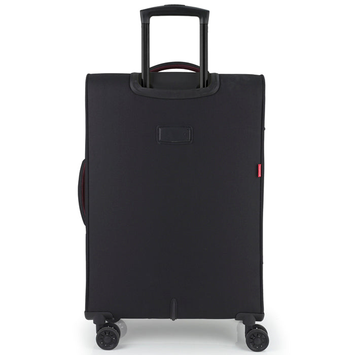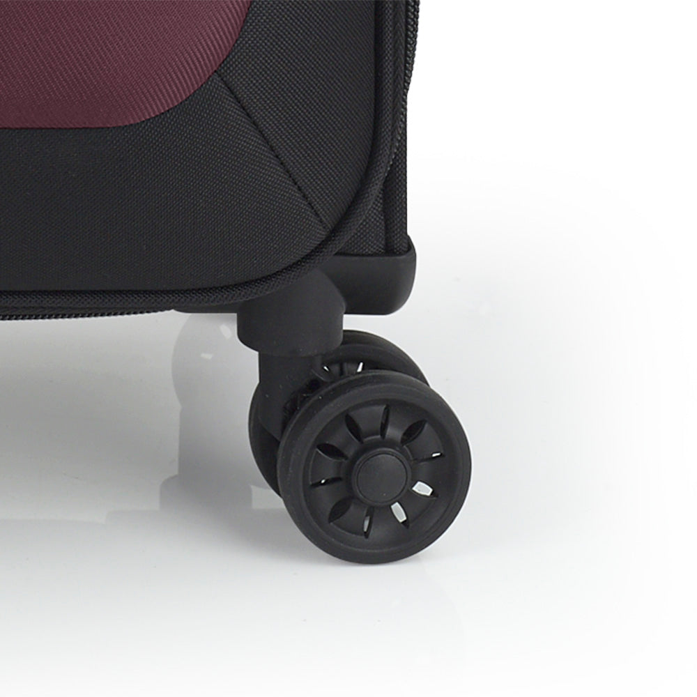 Валіза оснащена чотирма повноповоротними колесами із можливістю незалежного розвороту шкірного колеса на 360°. Системою передбачено рівномірний перерозподіл навантаження на кожне колесо, що в свою чергу сприяє плавному руху та маневреності валізі, докладаючи при цьому мінімум зусиль. Колеса виготовлені із високотемпературного термопластичного поліуретану (TPU). Матеріал має міцність порівнянну з пластиком, гнучкістю силікону, а також має підвищену стійкість до перепадів температур. Відмінною особливістю коліс із TPU матеріалу є зниження шуму до мінімуму під час руху валізи по нерівній поверхні. Завдяки стійкості до стирання матеріал коліс відрізняється тривалим терміном експлуатації.