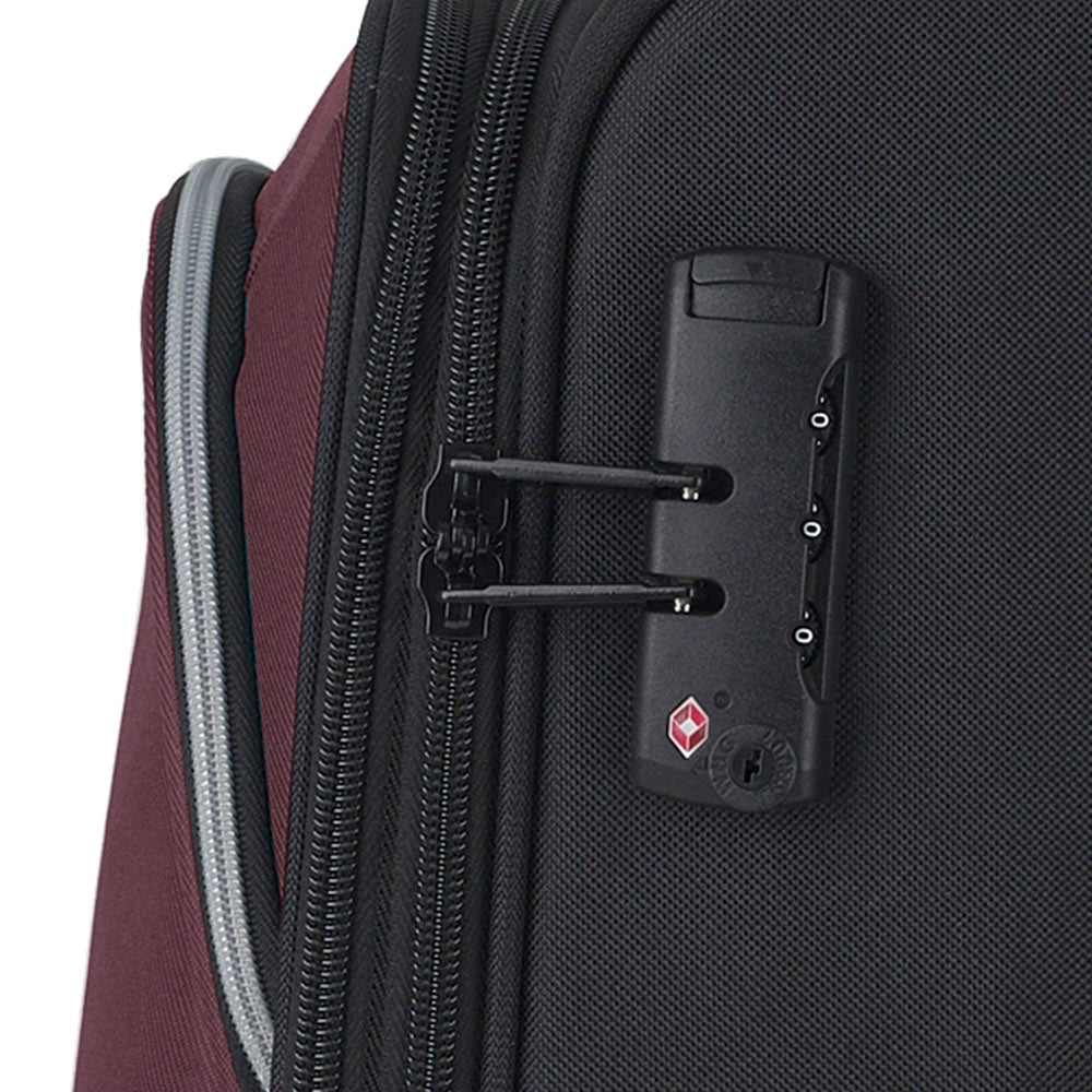 Валіза має фірмовий кодовий замок з функцією митного огляду TSA (Transportation Security Administration – Адміністрація з безпеки на транспорті). Митні служби спільно з Американською Асоціацією з безпеки на транспорті (Transportation Security Administration) отримали абсолютне право з метою безпеки доглядати будь-який чемодан на колесах або сумку, що здалася їм підозрілою. Агенти безпеки на транспорті забезпечені спеціальними TSA ключами, за які вони несуть персональну відповідальність. Завдяки наявності в замку функції TSA після огляду ваші замки залишаються цілими та неушкодженими на відміну від багажу без функції TSA.