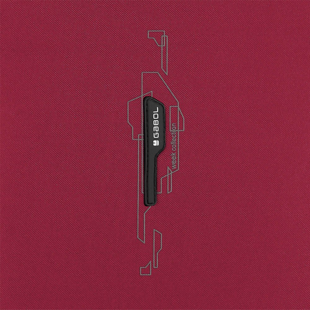 Серія валіз Gabol Week має просту та надежну конструкцію, на фасадній частині розміщено місткий карман на блискавці, а на тильній дві просторі кармани та вікно для інформації про власника багажу. Внутрішній об'єм має ремені для фіксації промов усередині, що дозволяє зберегти речі на своїх місцях. З валізою Gabol Week подорожувати легко та практично.