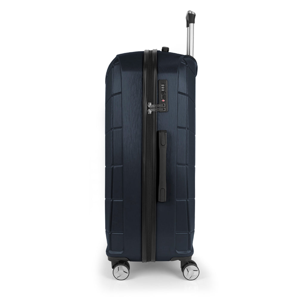 Преміальна колекція Gabol серії Dome виконана в класичному дизайні з геометричними елементами у вигляді ліній. Валізи виготовлені з міцного та довговічного матеріалу – ABS-пластика, що дуже важливо для валіз, які перевозяться у багажних відділеннях. Внутрішній обсяг розділень перегородкою на два відділення та має ремені для фіксації мов усередині. Валіза має фірмовий кодовий замок з функцією митного огляду TSA. Валіза легка, маневрена та зручна для транспортування.