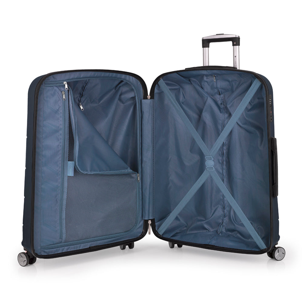 - Еластичні компрессійні ремні на фастексах для фіксації багажу всередині валізи.