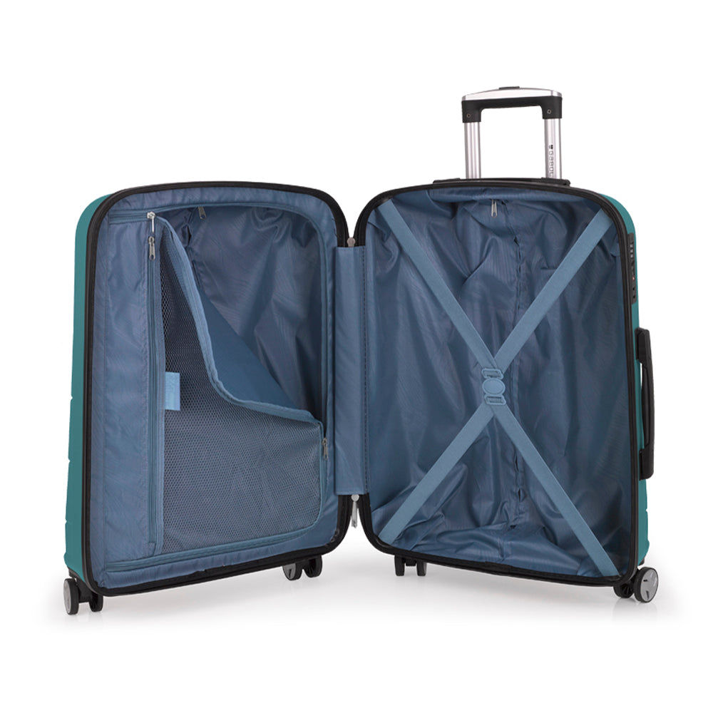 З кодовим замком Країна реєстрації бренду: Іспанія Країна-виробник товару: Китай Гарантія: 5 років Розміри: 46 x 65 x 26 см Колір: Turquesa Вес: 3,4 кг Матеріал: ABS-пластик Штрихкод: 8425126215466