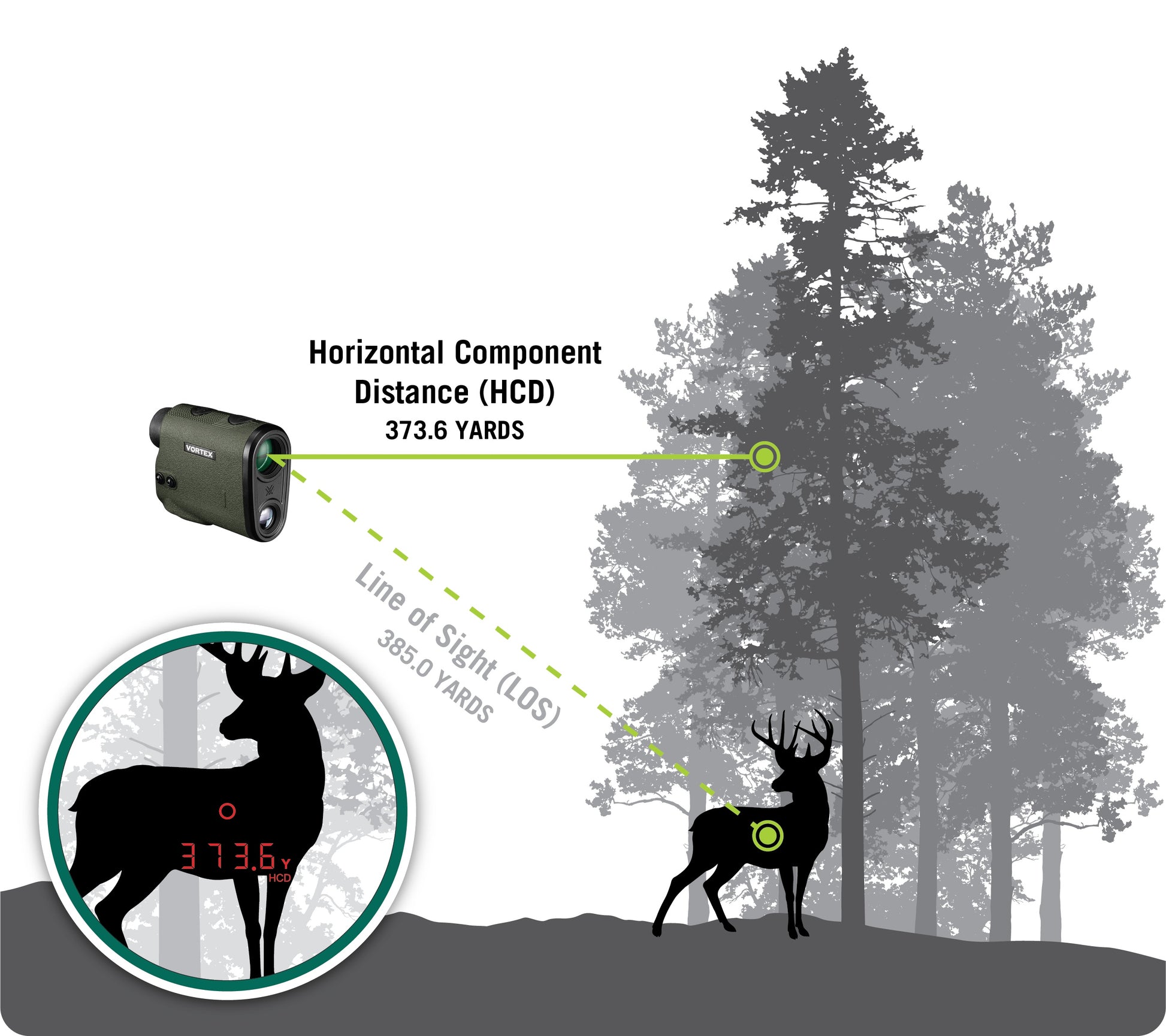 - HCD (Horizontal Component Distance) – У Diamondback HD 2000 використовується технологія вимірювання дальності HCD з кутовою компенсацією, щоб дати стрілкам з цибулі та гвинтівки критичні дані про відстань, необхідні для точних пострілів. Для вимірювання дистанції до об'єкта по горизонталі (проекції реальної дистанції на горизонтальну поверхню).