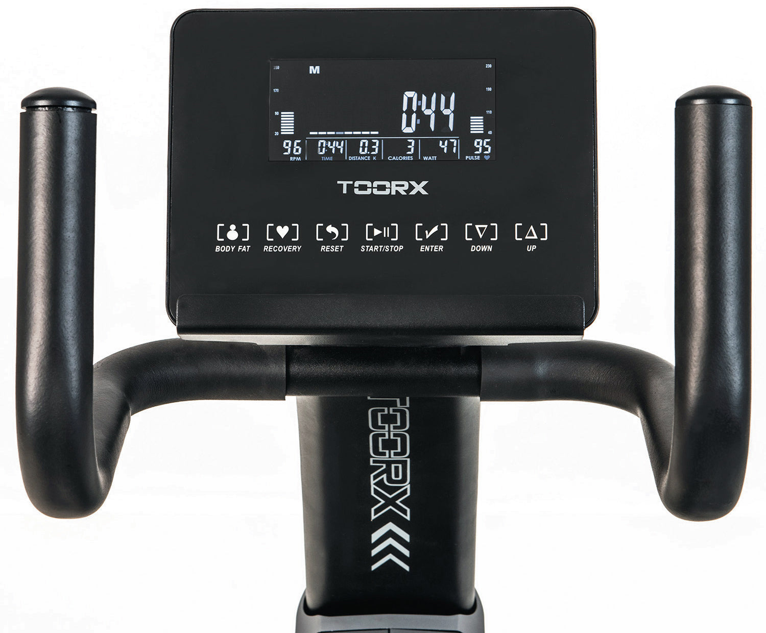 Горизонтальний велоергометр Toorx Recumbent Bike BRXR 3000 (BRX-R3000) із лінійки Light Commercial від італійського виробника Garlando SpA призначений для комфортного кардіотренування як удома, так і у невеликих фітнес клубах. Велоергометр із індукційною магнітною системою гальмування має 32 рівні навантаження, що регулюються за допомогою сучасного комп'ютера. 16-кілограмовий маховик створює відмінну плавність ходу, знижуючи навантаження на суглоби та мінімізуючи ризик отримання травми в процесі зайняття. Велоергометр розрахований на вес до 160 кг і має зручну спинку з можливістю регулювання углу нахилу для більшого комфорту. Вбудований приймач для бездротового датчика вимірювання пульсу буде доречним під час тренування по одній із чотирьох пульсозалежних програм. Консоль тренажера має підставку для смартфона/планшета та підтримує Bluetooth для інтеграції з популярними програмами iConsole+ Training та Kinomap , які перетворюють монотонне тренування у захоплюючий процес. Сидіння велоергометра регулюється в горизонтальній плоскості для індивідуального налаштування, а транспортувальні ролики в передній частині тренажера дозволяють переміщати його по кімнаті за допомогою зручної ручки.