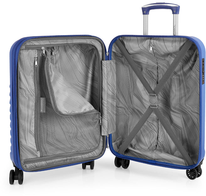 Корпус валіз Gabol серії Journey виконаний з легкого та водночас міцного матеріалу ABS - термопластичний листовий конструкційний матеріал, який має підвищену ударостійкість і пружність, що дуже важливо для валіз які перевозяться в багажних відділеннях. Унікальний дизайн валізу допоможе легше ідентифікувати його серед інших, щоб уникнути путаниці з багажем, а прихована ручка, у верхній частині валізи, допоможе Вам легко розмістити її у багажному відділенні. Внутрішній простір розділень перегородкою на два відділення з ремнями для фіксації промов усередині. Модель має функцію розширення, що дозволяє за необхідності збільшити об'єм валізі до 47 літрів.