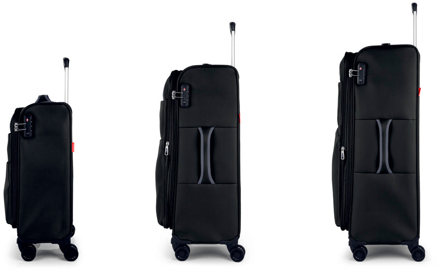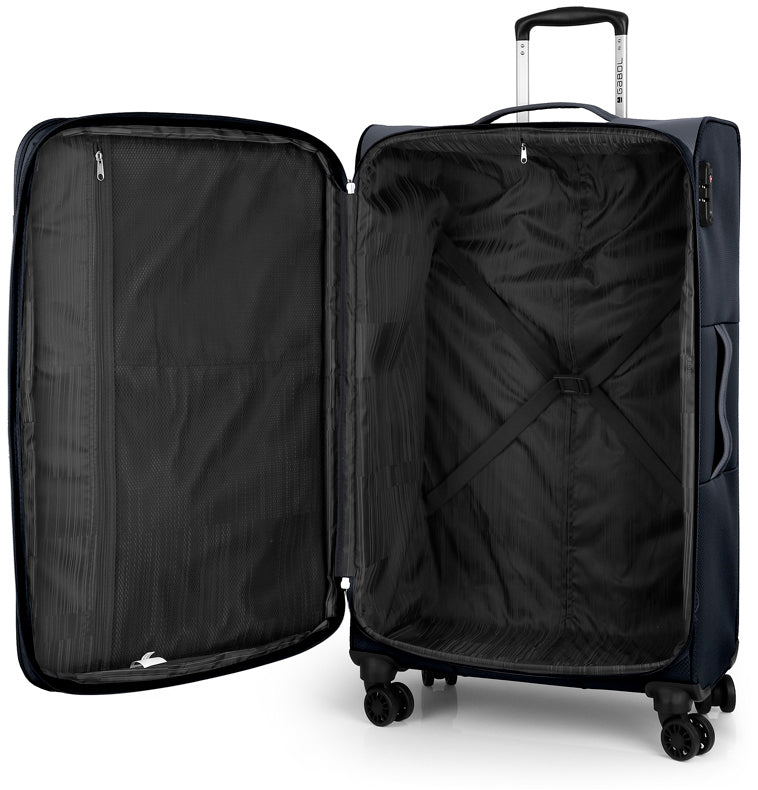 Валіза Gabol Cloud (L) Black (114047-001) одна з найлегших у своєму класі. Модель оснащена кодовим замком TSA системи для підвищення безпеки. Каркас дна легкий та міцний. На фронтальній частині розміщено два кармани на блискавці. Внутрішній простір має одне основне відділення з ремнями для фіксації промов. Вона легка, маневрена та зручна для транспортування.