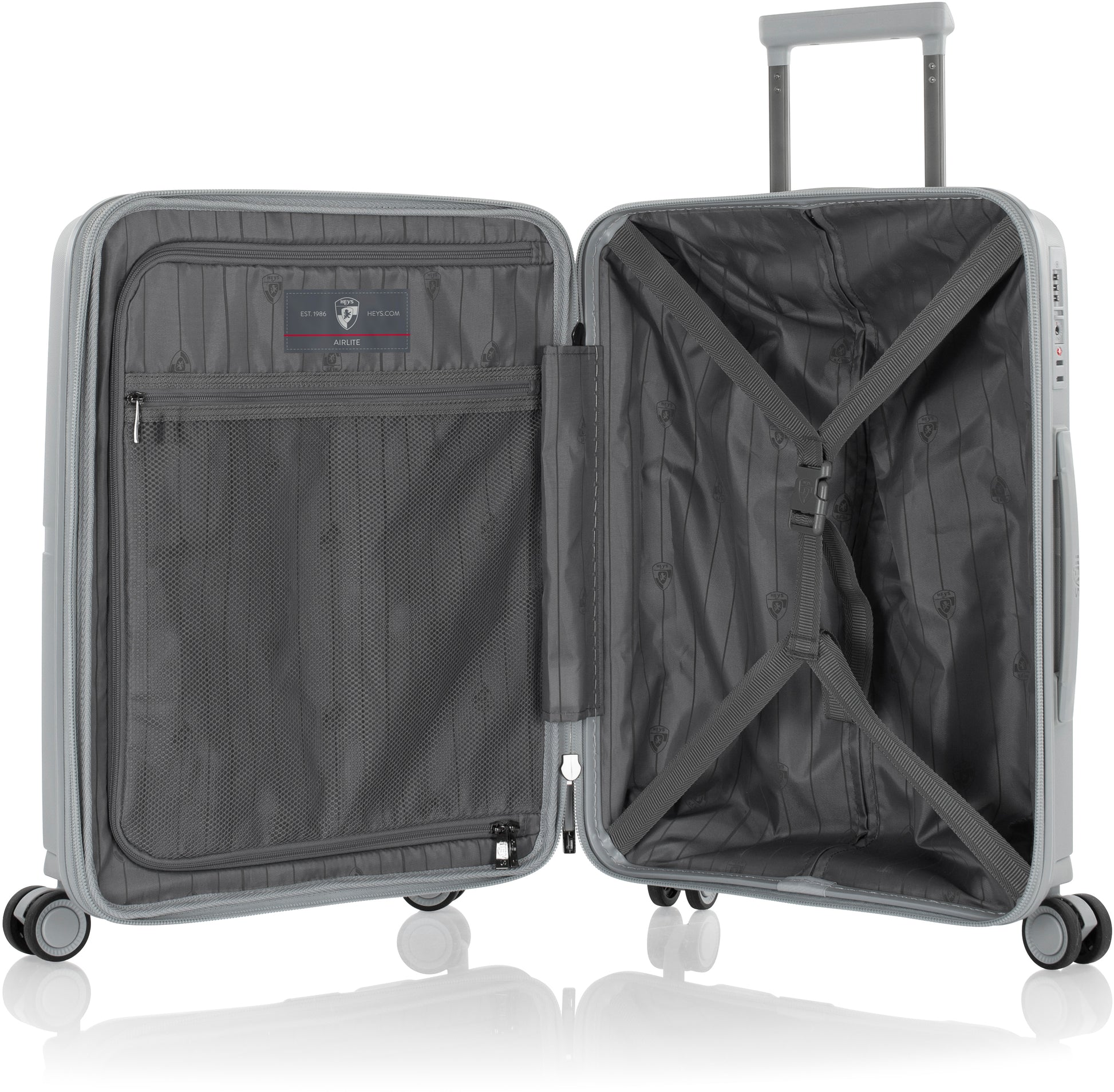 Чемпіонат Heys серії AirLite - це неповторний дизайн, функціональність та легкість. Дані валізи виготовленні з міцного та еластичного матеріалу Duraflex, який здатний витримати удар у 1814 кг. Бокові стійки, підвійні поворотні колеса на 360°, верхня та бічна ручки для перенесення, вбудований кодовий замок TSA, система розширення, компрессійні ремені з пряжками, все це робить валізу надзвичайно функціональним. Продуманий дизайн навіть у дрібницях, всі деталі валізи виготовлені у відповідний колір. Оригінальні матові кольори забезпечують валізі не тільки неповторний вигляд, а також полегшують її пошук на транспортній стрічці в аеропорту або в багажному відділенні автотранспорту. Легка алюмінієва кнопкова система телескопічної ручки з фіксатором по висоті додає комфорту при використанні.