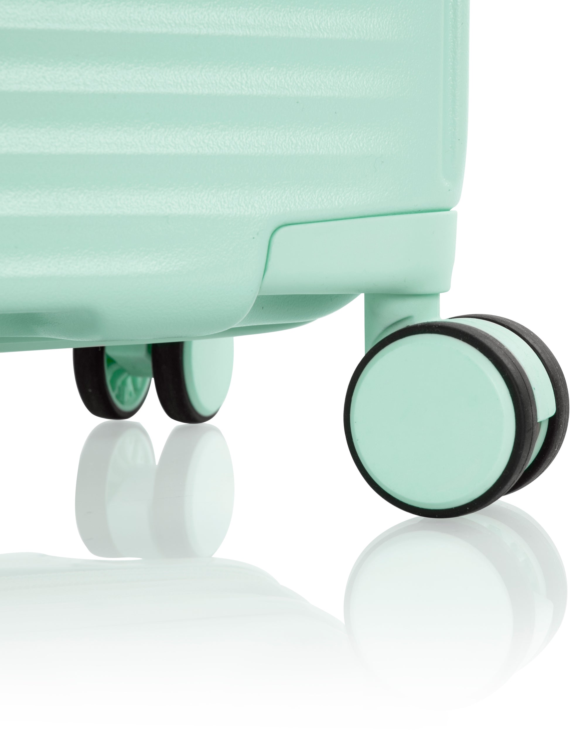 Валіза оснащена чотирма повноповоротними колесами Spinner із можливістю незалежного розвороту шкірного колеса на 360°. Системою передбачено рівномірний перерозподіл навантаження на кожне колесо, що сприяє плавному руху та маневреності валізі, докладаючи при цьому мінімум зусиль.
