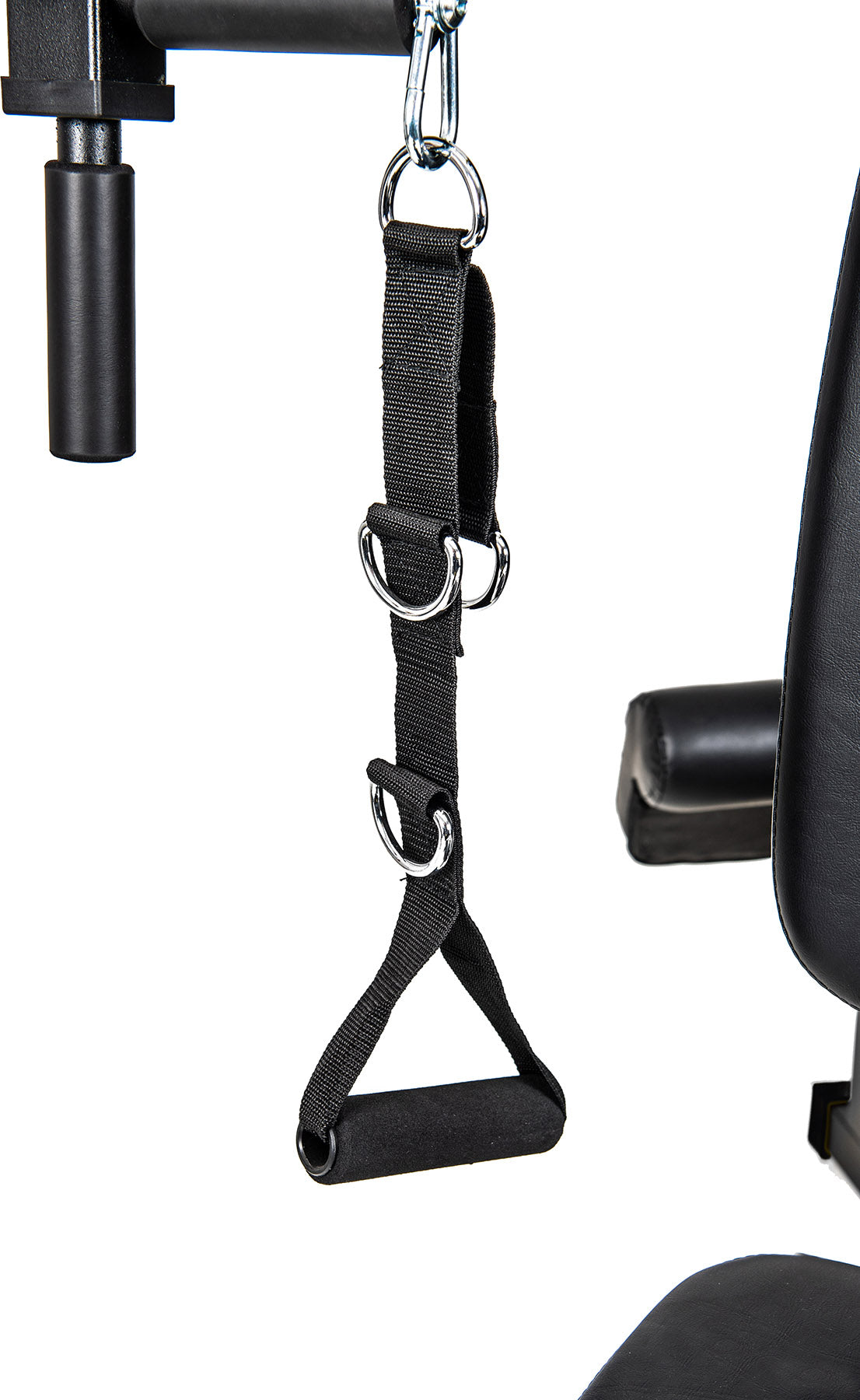 - В комплекті широка ручка для тяги, пряма ручка для тяги, дві регульовані ручки для тяги, лямка для ноги.