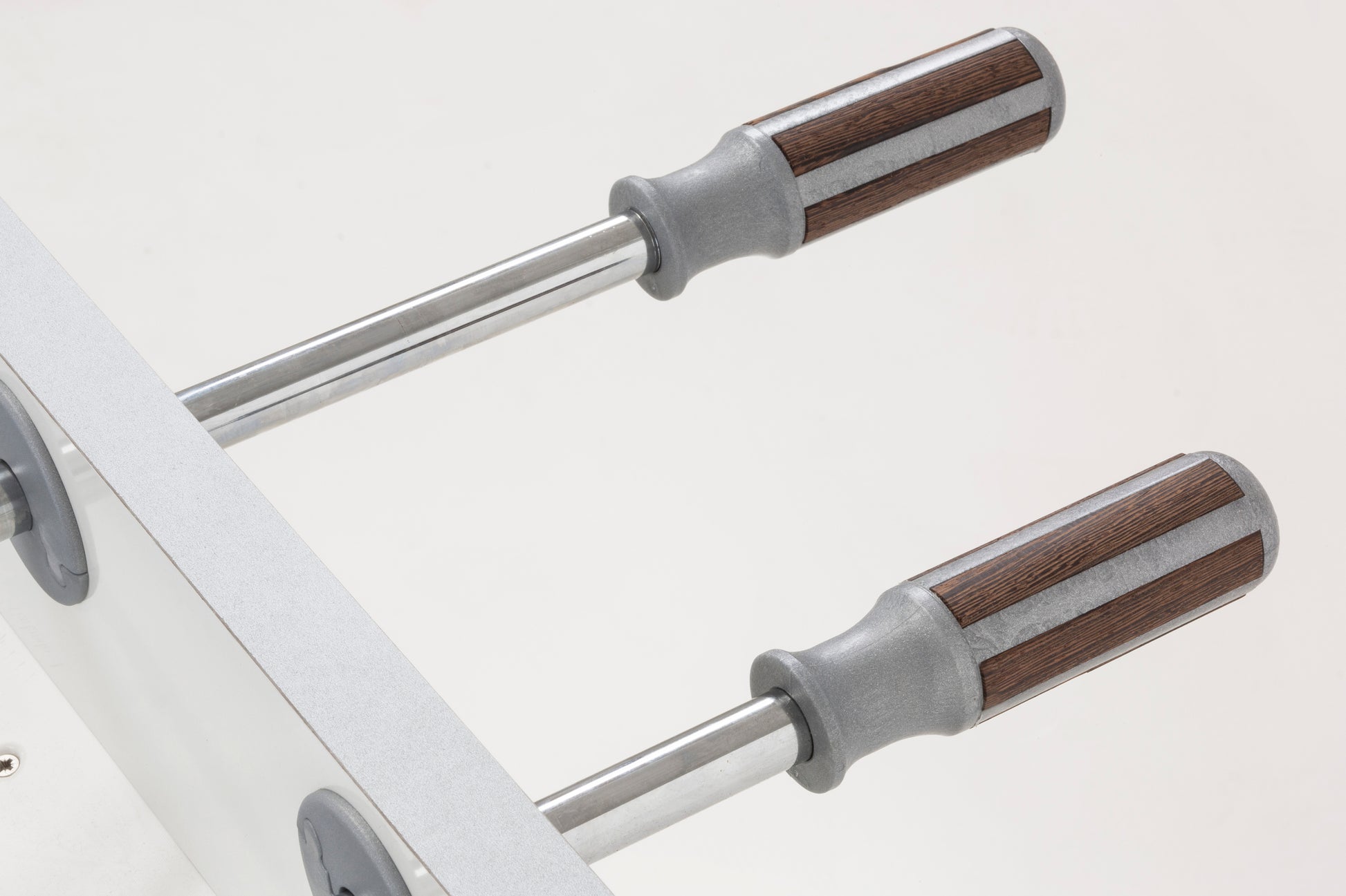 - Наскрізні хромовані сталеві штанги Ø16 мм. Якість використовуваних матеріалів збільшує толщину на 2,2 мм для запобігання вигину штанг та збереження ідеальної форми протягом тривалої години.
