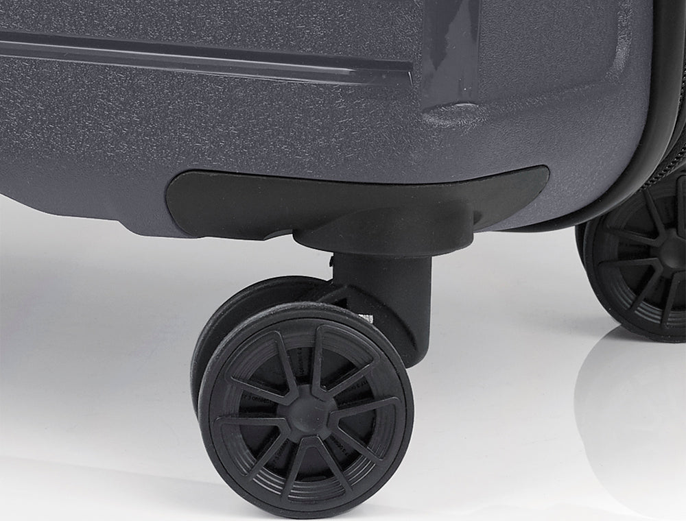 Валіза Gabol Osaka (L) Grey (121047-016) оснащена чотирма здвоєними колесами із можливістю незалежного розвороту на 360°. Конструкцією передбачено рівномірне розподіл навантаження на кожне колесо, що в свою чергу сприяє плавному движенню та маневреності валізі, докладаючи при цьому мінімум зусиль. Колеса виготовлені з високотемпературного термопластичного поліуретану (TPU). Даний матеріал має міцність порівнянну з пластиком, гнучкість силікону, а також підвищену стійкість до перепадів температури. Відмінною особливістю коліс із TPU є зниження шуму до мінімуму під час руху валізи. Завдяки стійкості до стирання, матеріал коліс відрізняється тривалим терміном експлуатації.