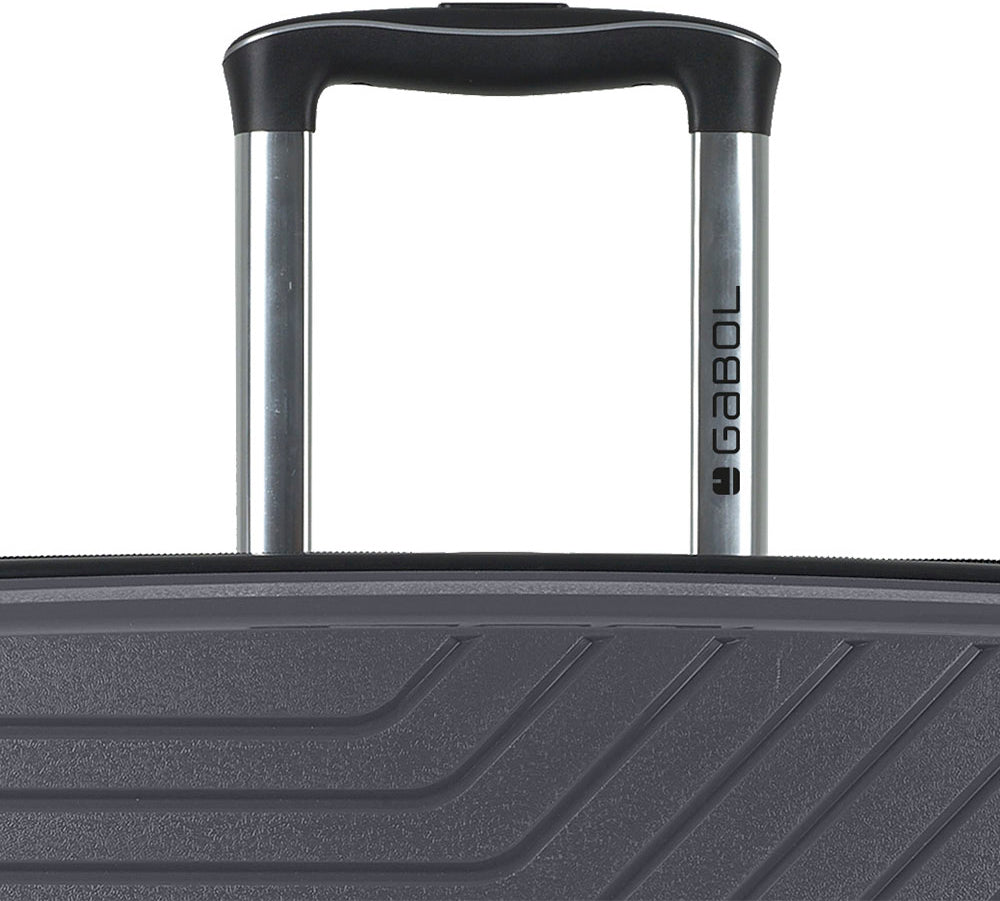 Корпус валіз Gabol серії Osaka виконаний із міцного та довговічного матеріалу - поліпропілену, що дуже важливо для валіз, які перевозяться у багажних відділеннях. Внутрішній простір розділень перегородкою на два відділення з ремнями для фіксації промов усередині. Модель має розширювальний клапан, який дає змогу за необхідності збільшити об'єм до 115 літрів. Крім того, модель має спеціальні молнии, конструктивна особливість яких забезпечує більший рівень захисту від крадіжок.