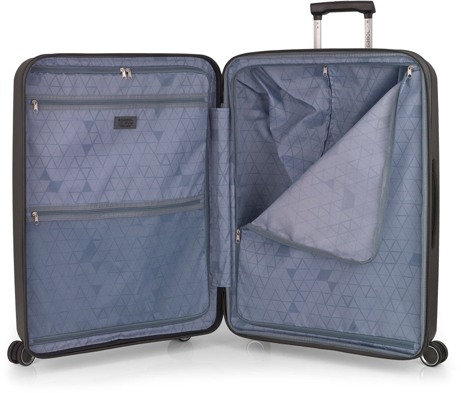 Валіза Gabol Brooklyn (L) Grey (123947-016) втілює в собі легкість і надійність, а мінімалістичний та сучасний дизайн надають їй винятковості. Корпус валіз серії Brooklyn виготовлений із поліпропілену. Цей матеріал поєднує в собі максимальну легкість, стійкість до деформацій, вигоряння та механічних пошкоджень. Внутрішній простір розділень на два відділення перегородкою, яка має карман на блискавці. Завдяки функції розширення можливо збільшити об'єм валізі до 119,6 літрів та розмістити ще більше необхідних промов. Валіза оснащена чотирма здвоєними колесами з можливістю розвороту на 360°. Конструкція забезпечує рівномірний перерозподіл навантаження на кожне колесо, що сприяє плавному руху та маневреності валізи. Колеса виготовлені з термопластичного поліуретану (TPU). Цей матеріал має міцність порівнянну з пластиком, гнучкістю силікону, а також підвищену стійкість до перепадів температури та стирання. Завдяки цьому колеса мають тривалий термін експлуатації. Відмінною особливістю коліс із TPU-матеріалу є зниження шуму до мінімуму під час руху валізи нерівною поверхнею.
