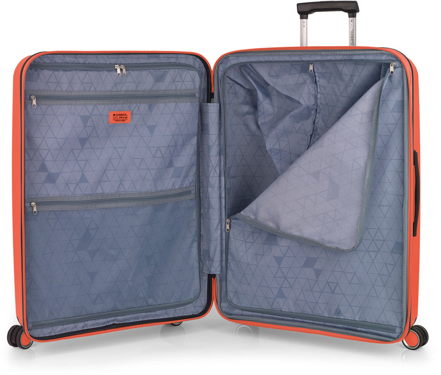 Валіза Gabol Brooklyn (L) Coral (123947-036) втілює в собі легкість і надійність, а насичений колір та сучасний дизайн придають їй винятковості. Корпус валіз серії Brooklyn виготовлений із поліпропілену. Цей матеріал поєднує в собі максимальну легкість, стійкість до деформацій, вигоряння та механічних пошкоджень. Внутрішній простір розділень на два відділення перегородкою, яка має карман на блискавці. Завдяки функції розширення можливо збільшити об'єм валізі до 119,6 літрів та розмістити ще більше необхідних промов. Валіза оснащена чотирма здвоєними колесами з можливістю розвороту на 360°. Конструкція забезпечує рівномірний перерозподіл навантаження на кожне колесо, що сприяє плавному руху та маневреності валізи. Колеса виготовлені з термопластичного поліуретану (TPU). Цей матеріал має міцність порівнянну з пластиком, гнучкістю силікону, а також підвищену стійкість до перепадів температури та стирання. Завдяки цьому колеса мають тривалий термін експлуатації. Відмінною особливістю коліс із TPU-матеріалу є зниження шуму до мінімуму під час руху валізи нерівною поверхнею.