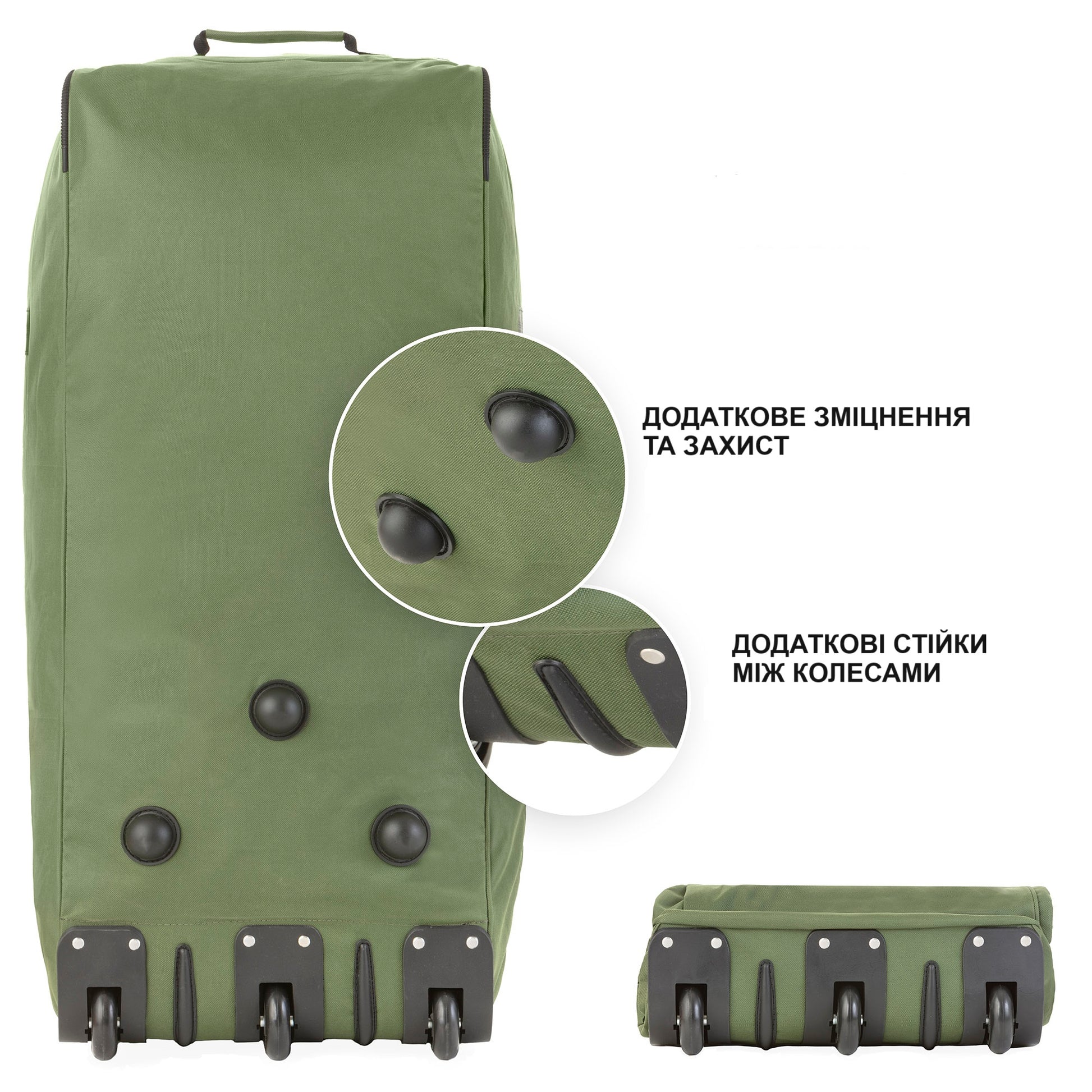- Роликовий механізм коліс з додатковими захисними протекторами з боків шкірного колеса.