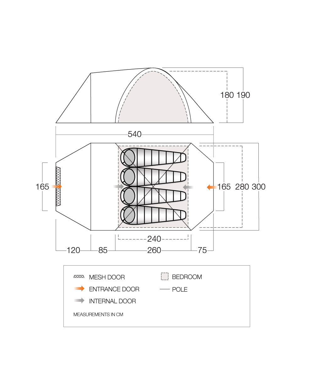 - Waterproof PE Groundsheet - Підлога з міцної тканини, яка витримає найактивніших туристів та створює чисте та сухе місце для зберігання взуття та похідного обладнання.