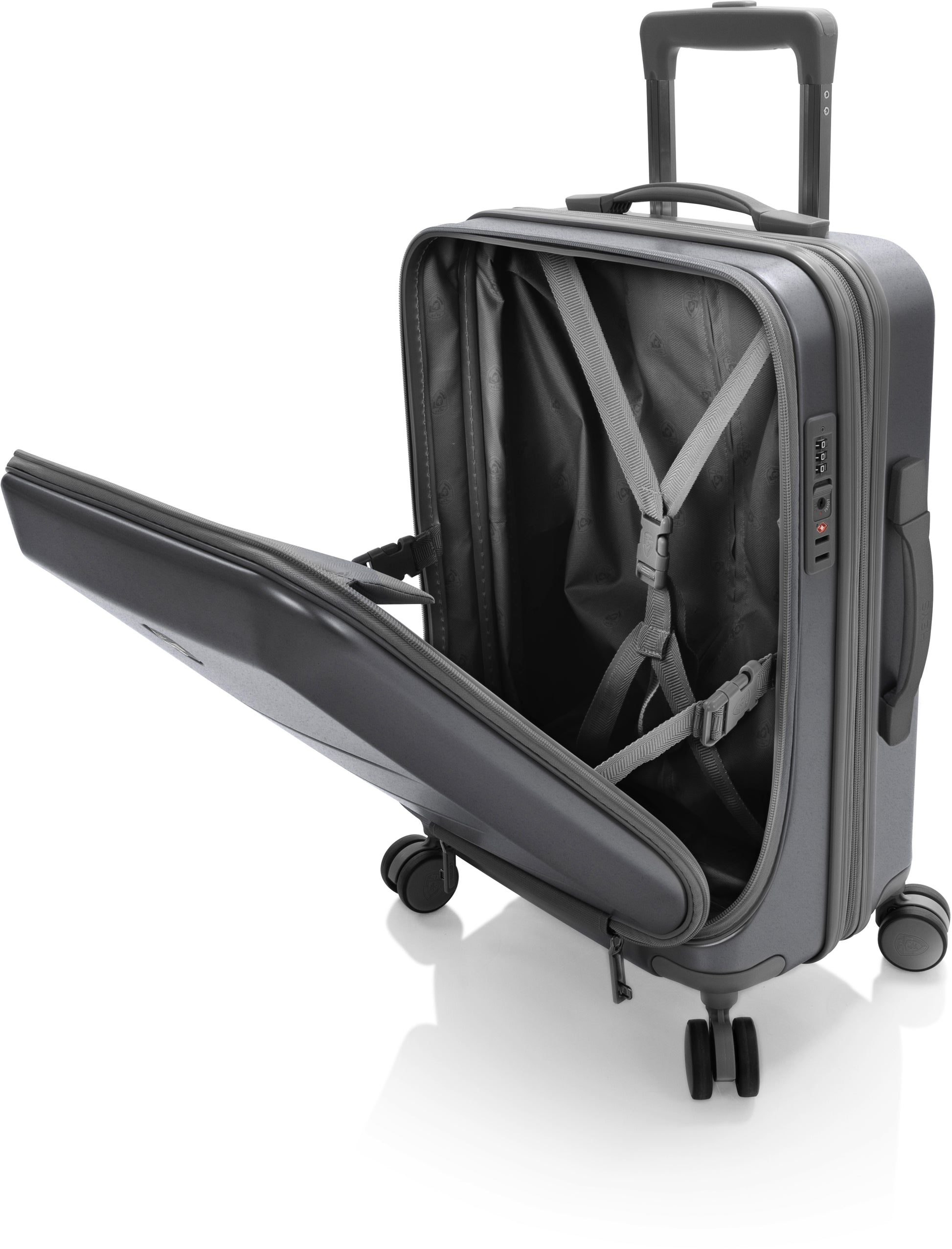 Валіза Heys EZ Fashion (S) Charcoal (10162-0047-21) на відміну від традиційної конструкції з розділенням 50/50, яка зустрічається в більшості жорстких валіз, відрізняється системою відкриття спереду. Це дає можливість пакування промов углибину, використовуючи передній клапан. Виготовлена з полікарбонатного композиту: легкого, міцного та ударостійкого матеріалу. Зовнішня поверхня має легке тиснення, що запобігає появі царапин та потертостей. Внутрішня частина повністю на підкладці. Запатентована конструкція з фронтальним доступом забезпечує швидкий та легкий доступ до відділення для ноутбука з пінопластовою підкладкою. Карман вміщує ноутбук з екраном до 15,6 дюйма. Є можливість збільшити корисний об'єм валізу до 20% завдяки наявності розширювального клапана.