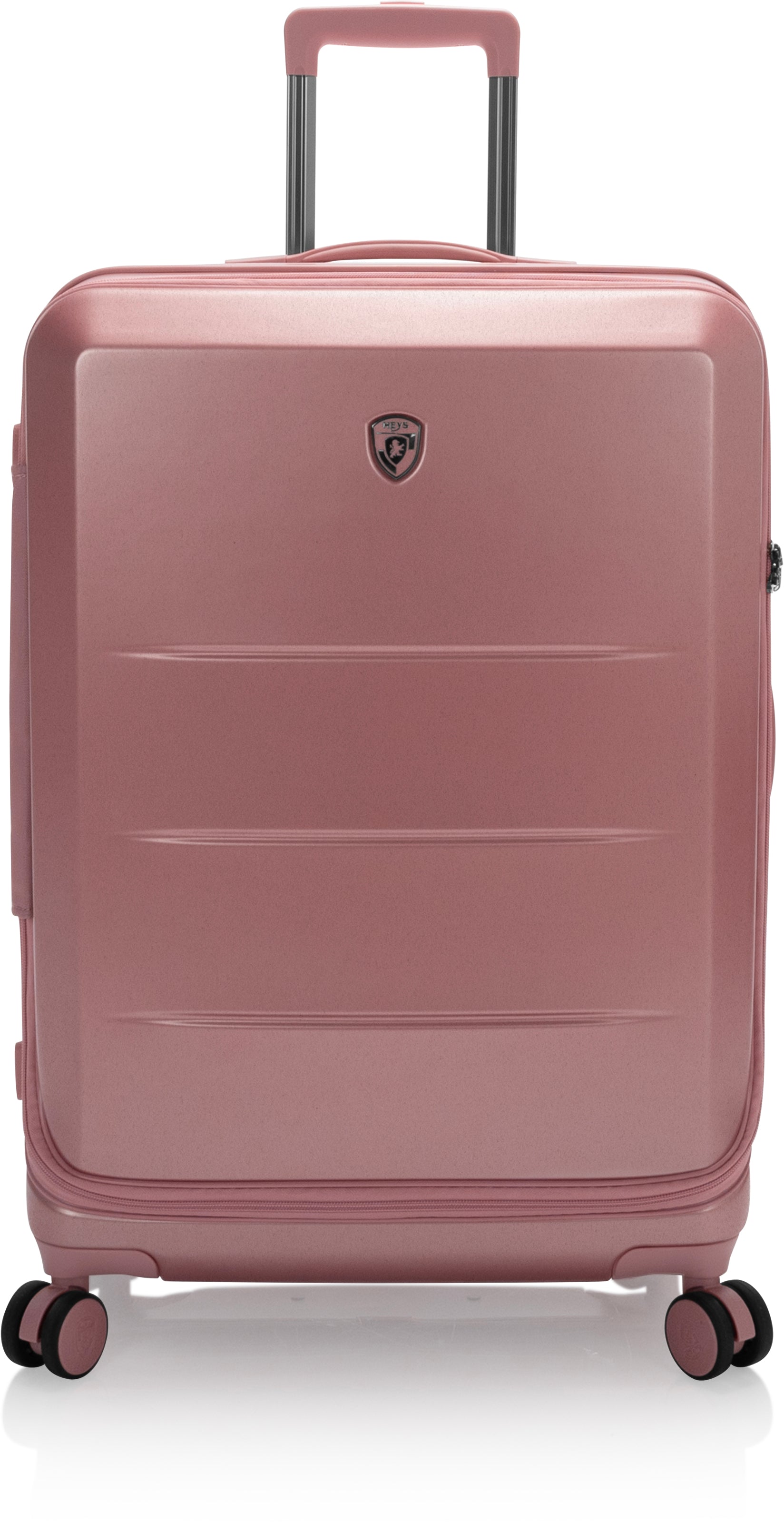 Валіза Heys EZ Fashion (M) Rose Gold (10162-0131-26) на відміну від традиційної конструкції з розділенням 50/50, яка зустрічається в більшості жорстких валіз, відрізняється системою відкриття спереду. Це дає можливість пакування промов углибину, використовуючи передній клапан. Виготовлена з полікарбонатного композиту: легкого, міцного та ударостійкого матеріалу. Зовнішня поверхня має легке тиснення, що запобігає появі царапин та потертостей. Внутрішня частина повністю на підкладці. Основне відділення має два еластичні ремні для фіксації промов, що закріплюються застібкою. Також є дві сітчасті кармани для зберігання необхідних дрібниць. Є можливість збільшити корисний об'єм валізу до 20% завдяки наявності розширювального клапана.