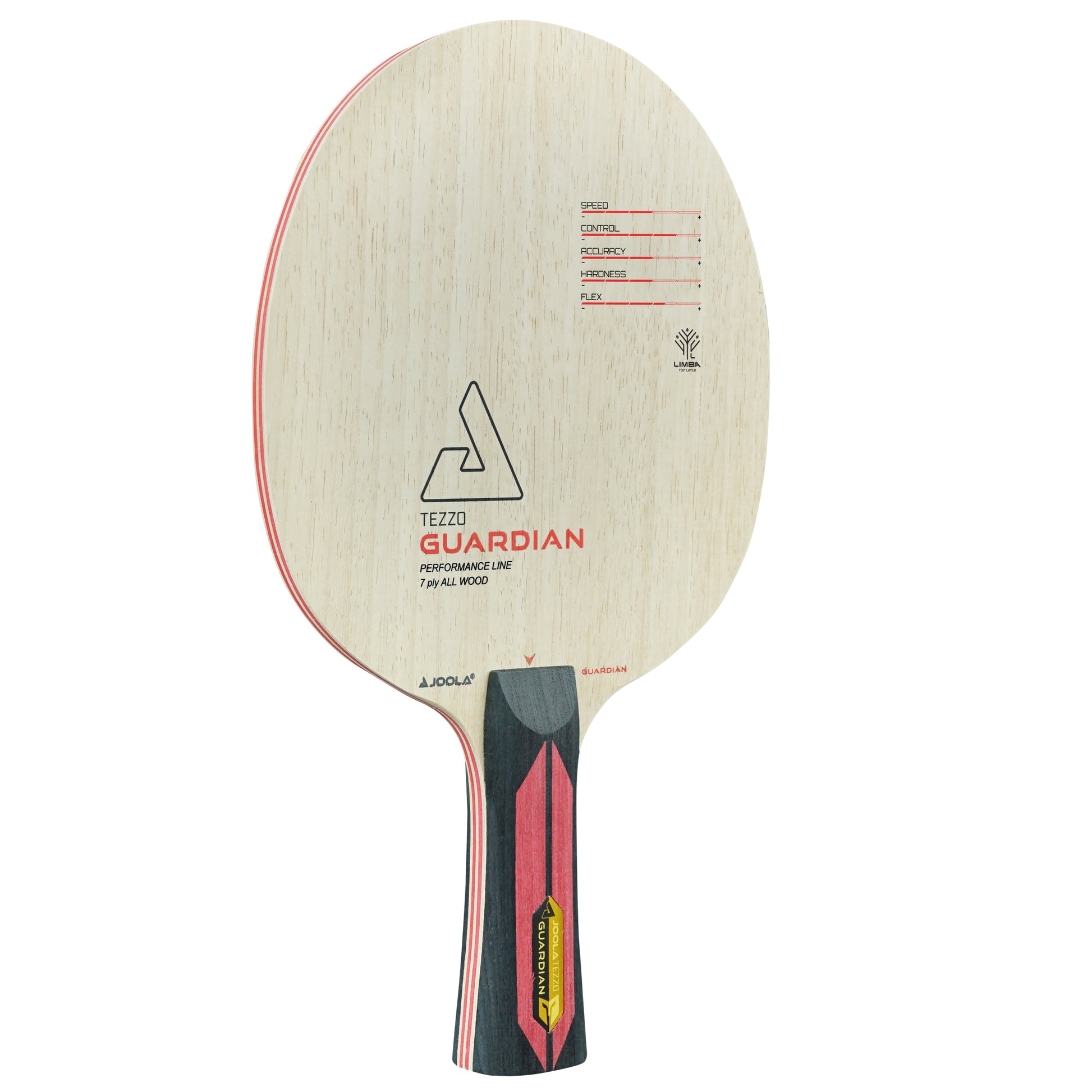 7-шаровий масив деревини складається із зовнішнього шпона Limba та 5 внутрішніх шарів шпону Ayous. Це створює особливо м'яке прикосновення і відчуття живої гри. Здається, що м'яч може дуже глибоко зануритися у деревину, що максимізує час контакту з м'ячем. Це особливо поблажливо впливає на вашу гру. Ідеально підходить для атакуючих універсалів.