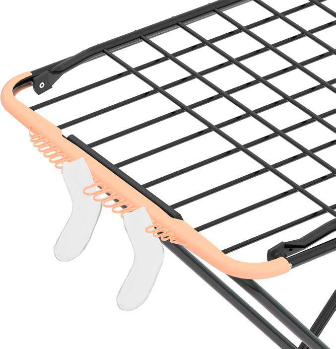 Сушарка для білизни напольна Colombo Bold ( ST286 ) - класична та универсальна модель . Основа виготовлена з пофарбованої сталі, а стрижні з алюмінію. Загальна робоча довжина - вісімнадцять метрів, а максимальне навантаження до восьми кілограмів. Сушарка має дві відкидні секції. Є додатковий тримач для сушіння невеликих промов. Ніжки обладнані накладками для захисту підлогового покриття .