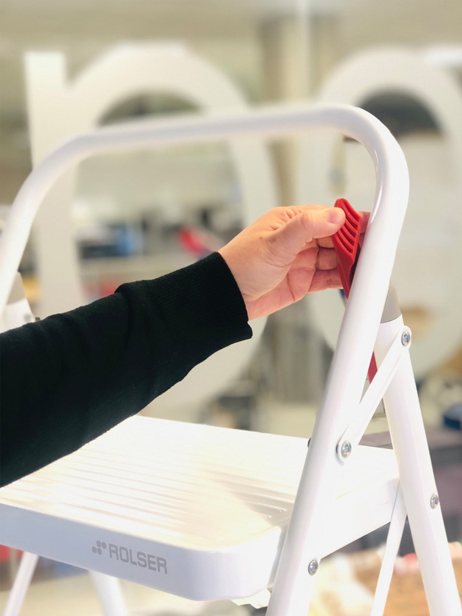 Лестниця Rolser Taburete M/10 UNE 2 щаблі Blanco (MET003-1024) - надійний помічник у домогосподарстві. Дана модель має два широкі щаблі з протиковзним покриттям. Конструкція забезпечена захистом від випадкового складання та розрахована на максимальне навантаження до 150 кг. Опорні ніжки із пластиковими накладками для більшої стійкості на слизових поверхнях. Дробина сертифікована відповідно до європейського стандарту якості UNE EN-14183.