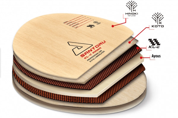Карбонове волокно KL-c (kevlar carbon) - легкий композитний матеріал найбільш відомий завдяки використанню в куленепробивних бронежилетах, що пом'якшує твердість карбону, створюючи удар середньої жорсткості. Цей композитний матеріал, здатний до чутливої гри у топ-спіні, має ідеальний баланс швидкості, обертання та відчуття.