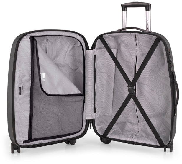 Корпус виконаний із легкого та водночас міцного матеріалу ABS - пластику, який має підвищену ударостійкість і пружність, що дуже важливо для валіз, які перевозяться в багажних відділеннях. Внутрішній простір розділений на два відділення перегородкою, яка має сітчасту кишеню на блискавці. Валіза обладнана розширювальним клапаном, який за необхідності дозволяє збільшити об'єм до 79 літрів.