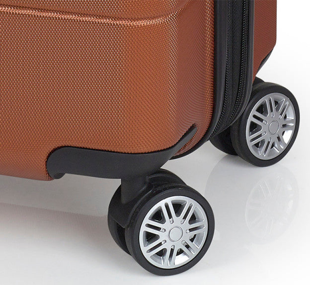Валіза оснащена чотирма колесами з можливістю незалежного розвороту кожного колеса на 360°. Система передбачає рівномірний перерозподіл навантаження на кожне колесо, що своєю чергою сприяє плавному руху та маневреності валізи, докладаючи при цьому мінімум зусиль. Колеса виготовлені з високотемпературного термопластичного поліуретану (TPU). Відмінною особливістю коліс із TPU матеріалу є зниження шуму до мінімуму під час руху валізи нерівною поверхнею. Завдяки стійкості до стирання, матеріал коліс відрізняється тривалим терміном експлуатації. Валіза легка, маневрова та зручна для транспортування.