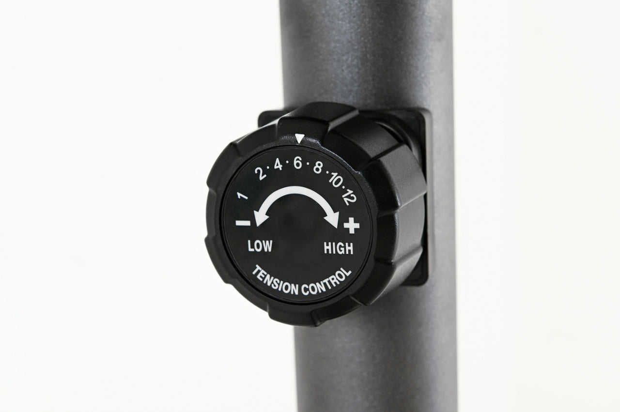 • Ефективна магнітна система гальмування: Забезпечує плавну зміну опору завдяки 12-рівневому ручному регулюванню, що дозволяє точно підібрати інтенсивність тренування.
