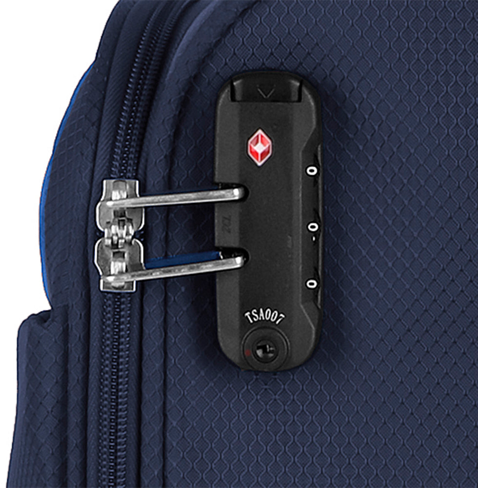 Валіза забезпечена фірмовим кодовим замком з функцією митного огляду. TSA (Transportation Security Administration – Адміністрація безпеки на транспорті). Митні служби спільно з Американською Асоціацією з безпеки на транспорті (Transportation Security Administration) отримали абсолютне право з метою безпеки доглядати будь-який чемодан на колесах або сумку, що здалася їм підозрілою. Агенти безпеки на транспорті забезпечені спеціальними TSA ключами, за які вони несуть персональну відповідальність. Завдяки наявності в замку функції TSA після огляду ваші замки залишаються цілими та неушкодженими на відміну від багажу без функції TSA.