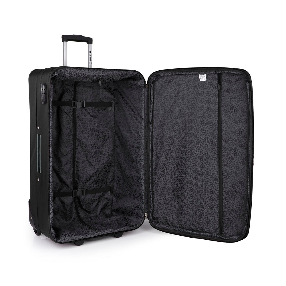 Колекція валіз Gabol Reims має оптимальне співвідношення якості, функціональності та вартості. Валіза Reims легка, маневрена та зручна для транспортування. На фасадній частині розміщено великий карман на блискавці. Внутрішній обсяг розділень перегородкою на два відділення та має ремені для фіксації мов усередині.