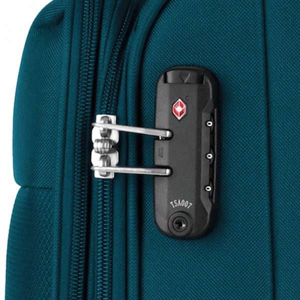 Валіза має фірмовий кодовий замок з функцією митного огляду TSA (Transportation Security Administration – Адміністрація з безпеки на транспорті). Митні служби спільно з Американською Асоціацією з безпеки на транспорті (Transportation Security Administration) отримали абсолютне право з метою безпеки доглядати будь-який чемодан на колесах або сумку, що здалася їм підозрілою. Агенти безпеки на транспорті забезпечені спеціальними TSA ключами, за які вони несуть персональну відповідальність. Завдяки наявності в замку функції TSA після огляду ваші замки залишаються цілими та неушкодженими на відміну від багажу без функції TSA.