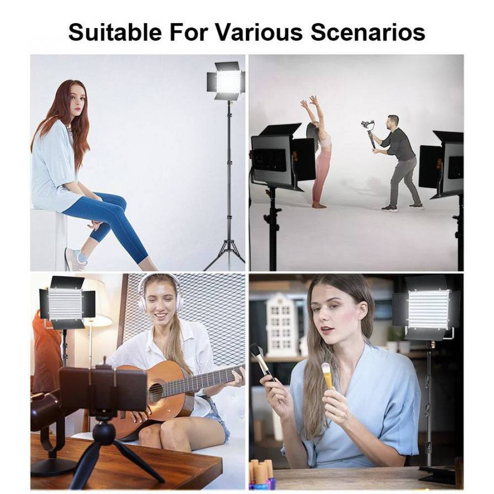 Знімні барndoors: Прикріплення барндорів до джерел світла створює пучок світла; в комплект входить біла тканина, що розсіює, для пом'якшення жорсткого світла і сумка для зберігання освітлювача та аксесуарів.